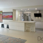 En un precioso entorno enmarcado por la sierra madrileña se encuentra esta vivienda de Torrelodones, en la que Davinia tuvo el placer de instalar una cocina moderna con península, diseñada para ser disfrutada en familia.Un proyecto completamente funcional, que responde a las necesidades de los clientes, proporcionando muchísimo almacenaje, amplia zona de trabajo, y respetando la distribución natural de la estancia, para dejar pasar la luz del exterior.Cocina moderna con península: distribuciónComo pueden ver, se trata de una cocina con una ß, en la que encontramos:Una zona de mobiliario bajo, con fregadero bajo una amplia ventana que permite bañar el espacio de una increíble iluminación natural.Una zona de mobiliario bajo