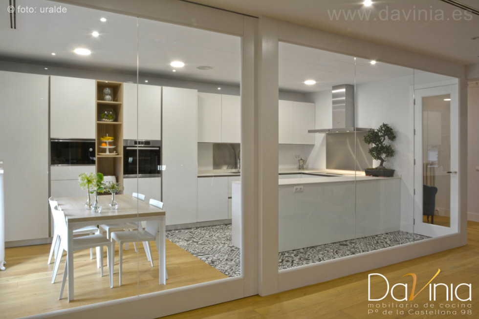 Como ve, la elección dependerá del diseño de su vivienda, de sus gustos y de sus necesidades. Y si lo que busca es una solución intermedia entre una cocina abierta y una cerrada, en Davinia contamos con separadores de cristal que aúnan las ventajas de los dos sistemas y anulan sus inconvenientes: más luz, más espacio, menos ruidos y menos olores.