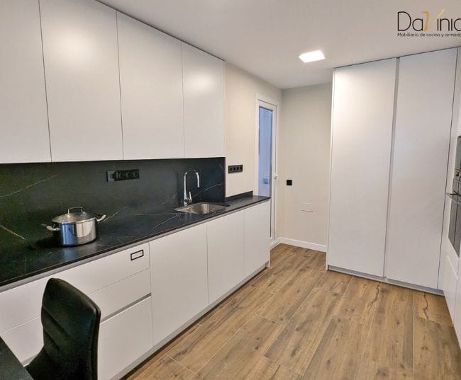 Custom designed kitchen in a home in Madrid, with invisible induction and art on the walls...