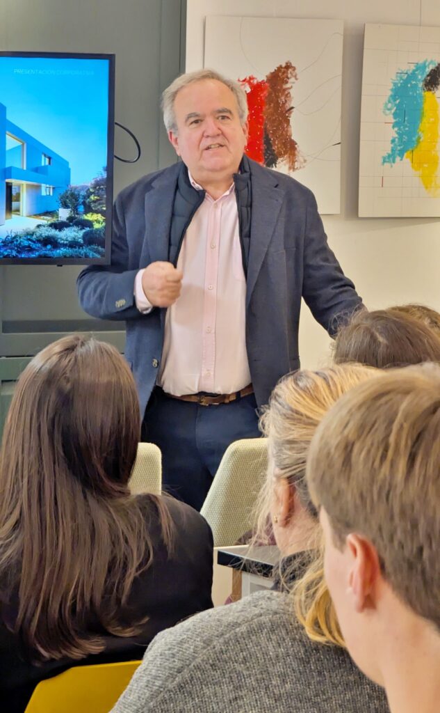 Durante el encuentro, los asistentes pudieron conocer con mayor detalle la trayectoria de Cosentino, un auténtico caso de éxito empresarial que ha llevado a una empresa familiar española a convertirse en un referente global en superficies para arquitectura y diseño. Cosentino Group está presente en más de 120 países y cuenta con una extensa red de más de 100 centros de distribución y comerciales en todo el mundo, lo que le permite acompañar proyectos en numerosos continentes con un servicio profesional especializado. La compañía supera los 6.000 empleados y cerró el ejercicio de 2024 con una cifra de negocio consolidada de aproximadamente 1.464 millones de euros, reafirmando su liderazgo internacional en innovación, sostenibilidad y calidad.
