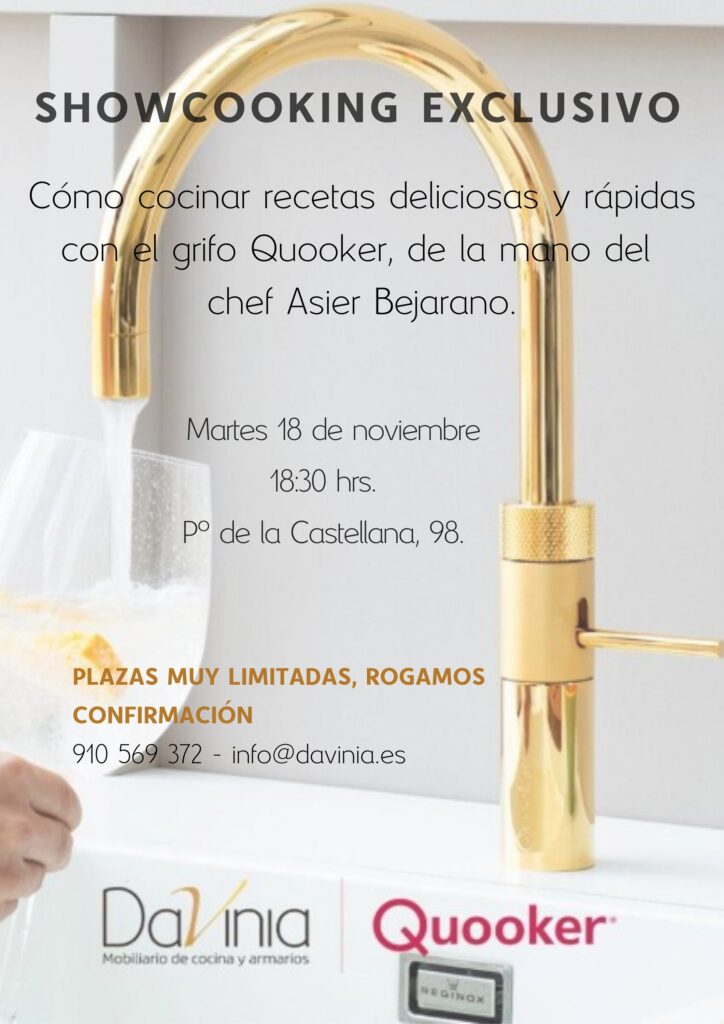El próximo martes 18 de noviembre a las 18:30 h, Davinia tiene el placer de acoger en su showroom del P.º de la Castellana, 98 (Madrid) un evento muy especial junto a Quooker, la marca que ha revolucionado la forma de cocinar en casa.