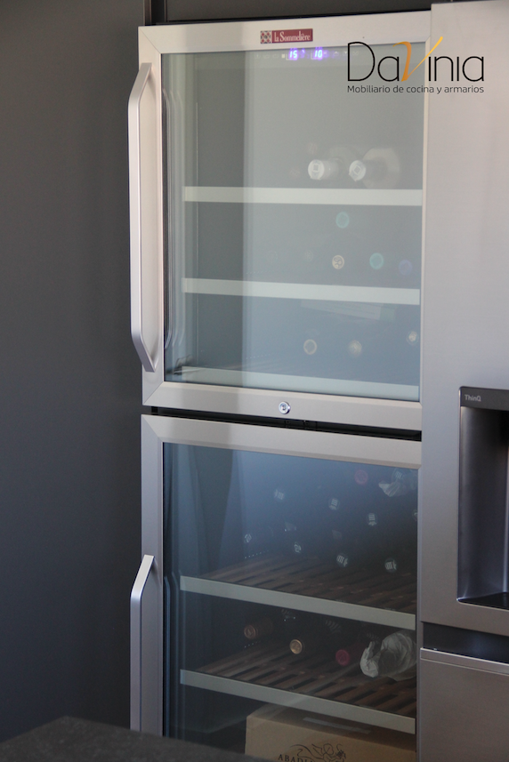 Pero, sin duda, uno de los elementos clave de esta cocina es la vinoteca, situada junto a un frigorífico americano.