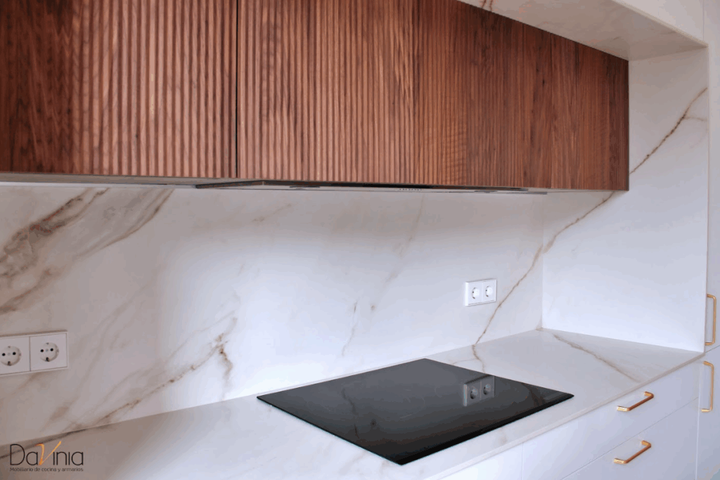 Este proyecto combina con acierto la calidez de la madera con la sofisticación del efecto mármol, generando una cocina de estética equilibrada y actual. La disposición de los elementos y las texturas escogidas contribuyen a una sensación de continuidad y calma visual, mientras que la funcionalidad queda resuelta mediante soluciones de almacenaje discretas y electrodomésticos integrados. El conjunto aúna materiales nobles y una ejecución técnica precisa, dando lugar a un espacio elegante, cómodo y pensado para disfrutarse en el uso cotidiano.